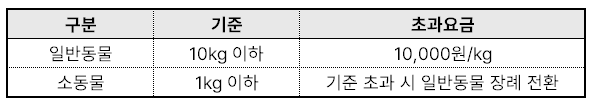 ※단, 세종/김해점의 경우 일반동물 무게 기준 5kg 이하